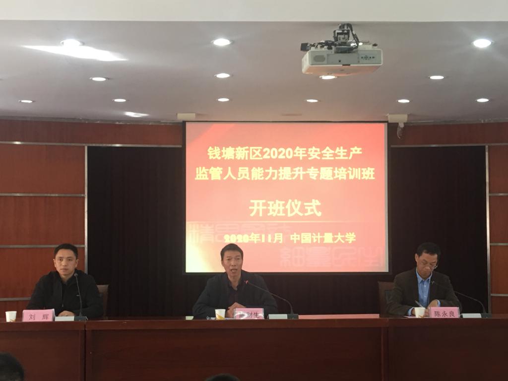 11月18日上午,由杭州钱塘新区安全生产委员会和杭州钱塘新区应急管理局联合举办,中国计量大学质量与安全工程学院承办的“钱塘新区2020年安全生产监管人员能力提升专题培训班”在我校举行。钱塘新区应急管理局陈财生副局长、中国计量大学质量与安全工程学院党委书记陈永良、安全工程专业负责人刘辉及专业相关教师出席开班仪式,开班仪式由刘辉主持。来自钱塘新区各街道、各社区的安全监管人员100余人将参加此次培训。