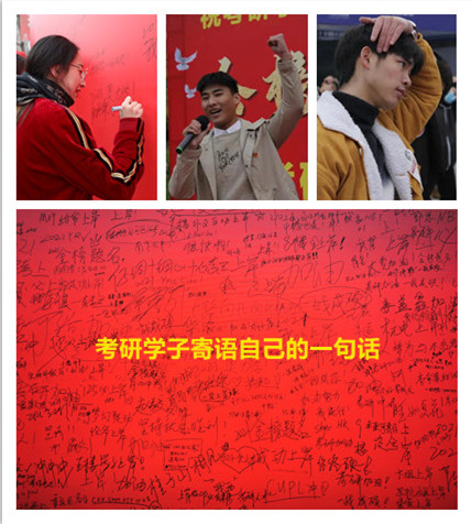 考研学子也纷纷为自己加油,在签名墙上为自己写下了美丽的祝福。