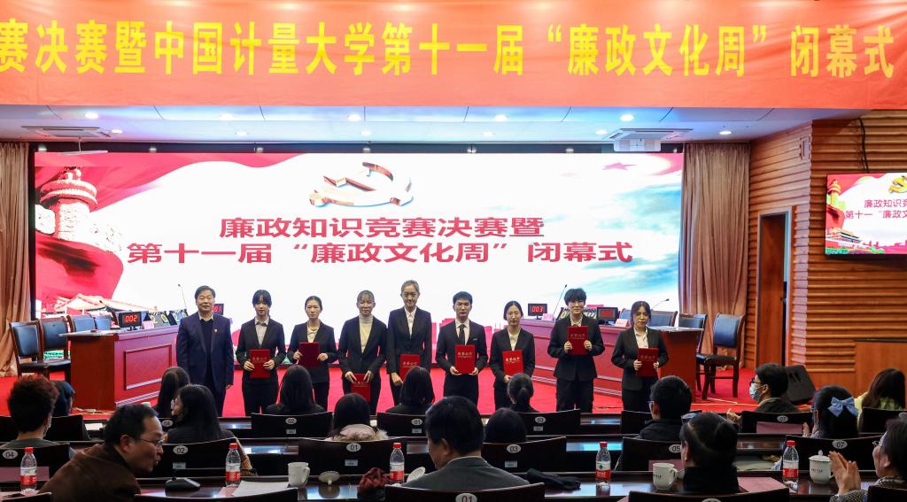 第十一届“廉政文化周”廉政知识竞赛分初赛和决赛两部分。初赛为网络知识竞赛,共有7900余名师生在线答题,经过比拼,8支队伍进入了决赛现场。决赛分两轮进行,由必答题、抢答题、风险题等环节组成,24名参赛选手在赛前精心准备,在赛场上为大家呈现了一场紧张激烈而又精彩纷呈的比赛。经过激烈角逐,理学院代表队获得决赛一等奖,光学与电子科技学院、机电工程学院代表队分别获得决赛二等奖,法学院、经济与管理学院、人文与外语学院、计量测试工程学院、标准化学院代表队分别获得决赛三等奖。理学院党委、光学与电子科技学院党委、机电工程学院党委、法学院党委、人文与外语学院党委、标准化学院党总支、图书馆党总支、后勤服务中心党总支、经济与管理学院党委、计量测试工程学院党委分别获得廉政知识竞赛优秀组织奖。参赛选手在赛后纷纷表示,比赛的过程中学习到很多廉政知识,既是比赛也是自我升华,要让廉政常驻心中,干净做人干净做事。闭幕式上,为廉政文化作品大赛漫画类、其他类作品获奖选手进行了颁奖。
