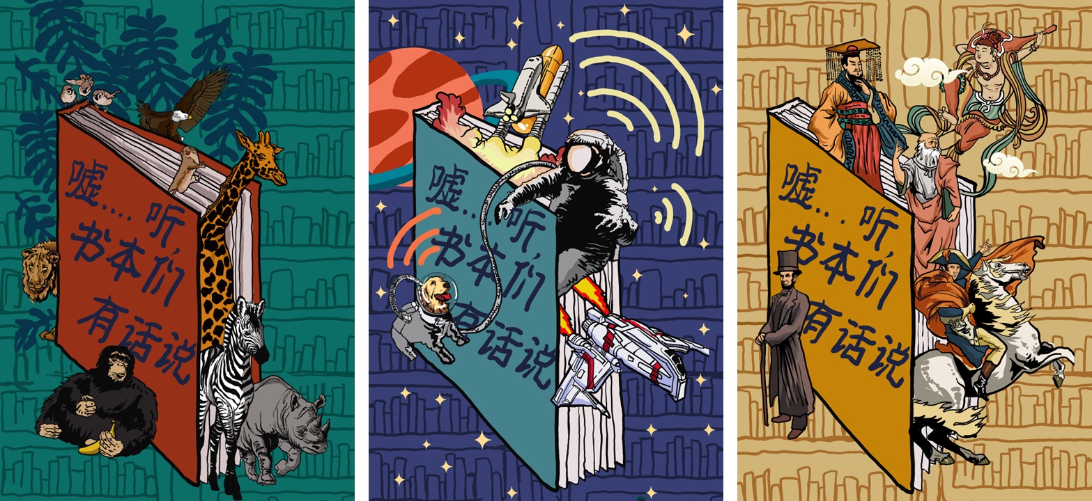 作为校第十二届读书节活动的重要组成部分,我校参加全国“图书馆杯”主题图像创意设计征集活动,最终,经层层评审,我校朱雨童设计的插画作品《书本们有话说》获得金星设计作品奖。