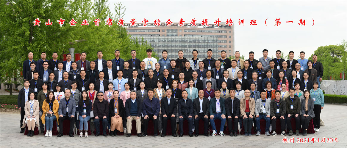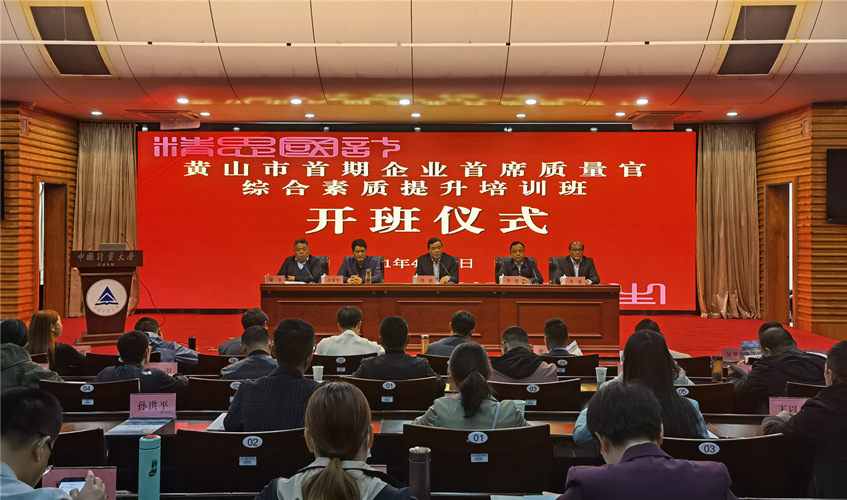 人间四月芳菲尽,山寺桃花始盛开。为进一步推动黄山市企业高质量发展,“2021年黄山市首期企业首席质量官综合素质提升培训班”于4月19日至21日在中国计量大学举办。中国计量大学党委副书记肖刚,黄山市质量发展委员会办公室主任、市市场监督管理局党组书记、局长李炜,黄山市市场监督管理局党组成员、副局长占荣军,中国计量大学人事处处长、黄山高质量发展研究院院长朱诚和中国计量大学继续教育学院党总支书记巢岺出席开班式。90余位来自黄山市各区县和黄山高新区企业中高层及重点骨干企业首席质量官同志全程脱产学习。