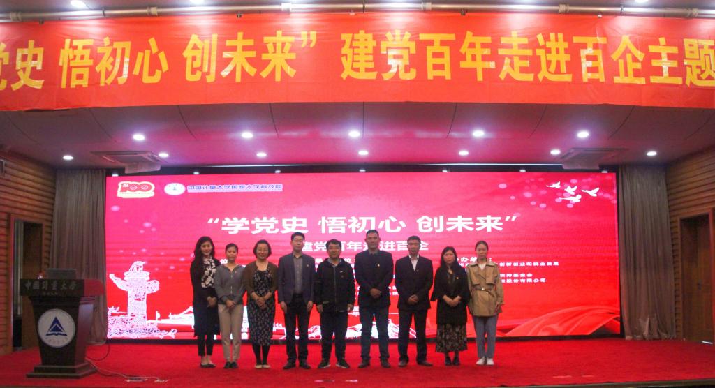 4月21日,为迎接中国共产党百年华诞,扎实推进中国计量大学国家大学科技园在园企业的党史学习教育,引导广大创新创业者厚植爱党、爱国情感,使红色基因代代传承,中国计量大学国家大学科技园联同杭州市人力资源与社会保障局、校招就处、校资产经营公司党总支等多家单位举办杭州市“学党史 悟初心 创未来”建党百年走进百企主题活动。