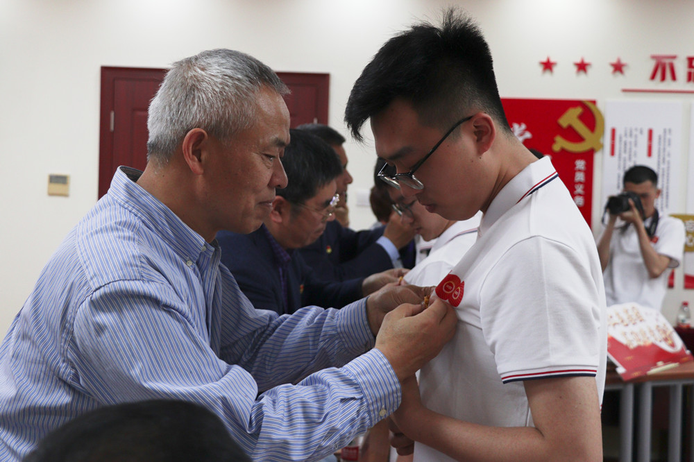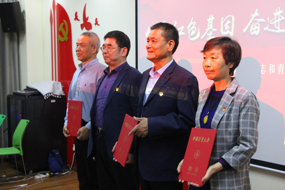 参观结束后,大家来到学术沙龙室围坐一起,分享党史学习的体会和感悟。首先,举行“青马工程”导师的聘任仪式,葛洪良副校长为“青马工程”导师团授牌并为三位导师颁发聘书,校团委聘请“弘扬红船精神”党建工作室的老同志为青马工程的导师,发挥他们的政治优势、经验优势、威望优势,加强对青年学生的思想引领,引导广大青年听党话、跟党走。老同志们为青年学生党员代表佩戴党徽,寄语新时代青年学生学党史、强信念,接好接力棒,跑出加速度。