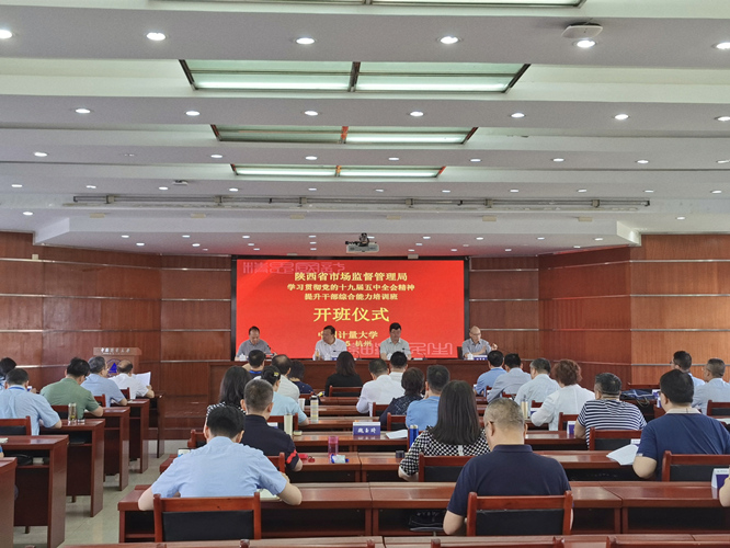 5月10日上午,陕西省市场监督管理局学习党的十九届五中全会精神提升干部综合能力培训班在我校举办。陕西省市场监管局党组成员、副局长牛子仲,中国计量大学党委委员、副校长王迪钊,陕西省市场监管局一级巡视员余智德,陕西省市场监管局人事处处长刘育民出席开班仪式。仪式由刘育民主持。陕西省市场监督管理系统的各市局的领导人和省局正处职领导干部,新提拔处级干部以及年度考核优秀等次级干部代表等参加本次培训,陕西省省政府办公厅派员指导。