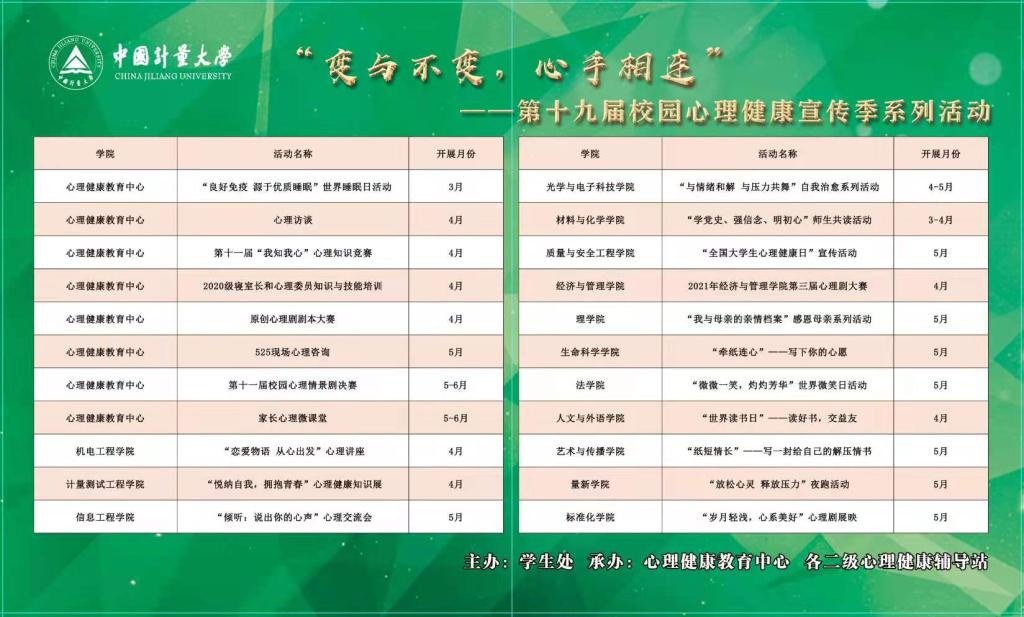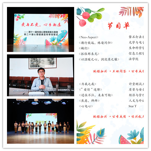 心理情景剧大赛是心理健康教育中心主办的第二十届心理健康宣传季的活动之一,各学院在心理健康宣传季也举行了众多学生喜闻乐见的活动,帮助学生排忧解难,释放压力,保持身心健康。
