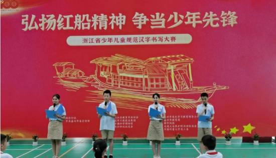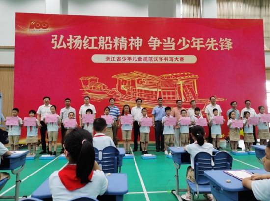 6月11日上午,由中国计量大学关心下一代工作委员会作为承办单位之一,西泠印社、中共嘉兴市委宣传部指导,浙江省教育书法协会主办的浙江省少年儿童规范汉字书写大赛启动仪式在嘉兴市同济大学附属嘉兴实验学校举行。该校二至四年级208位学生,通过现场书写规范汉字的方式,学习红船精神的内涵,争做红船精神的继承人。