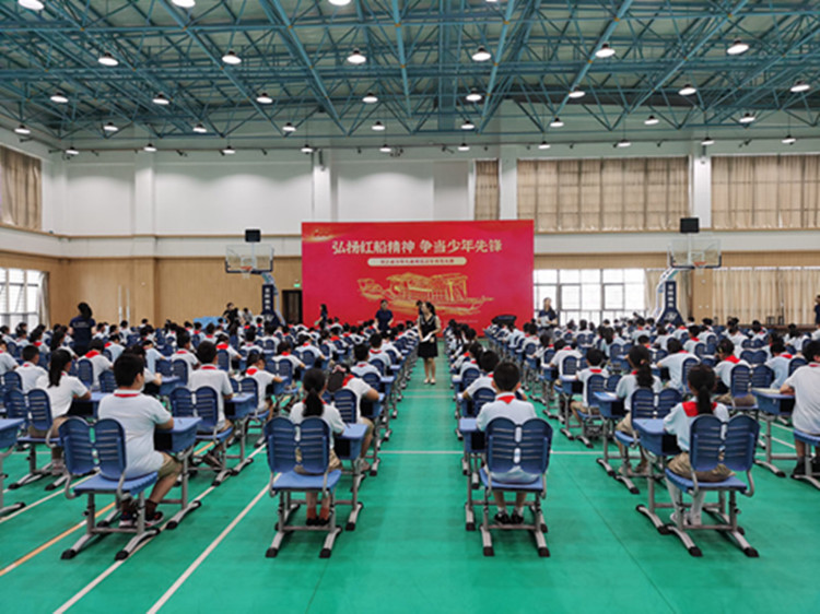 在启动仪式上,同济大学嘉兴实验学校的同学还深情朗诵了由胡建成创作的散文诗《红船启航》。