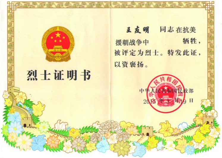 王文兰没有成家,没有子女。他瞒着父母报名参军,母亲知道后,非常生气,苦口婆心地劝他:“你别去了,美国人太厉害了。”但王文兰铁定了心,要保家卫国。