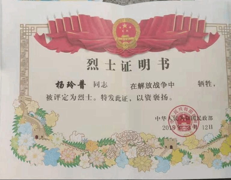 杨玲普(1925-1949),1944年参军,1949年10月牺牲于福建。