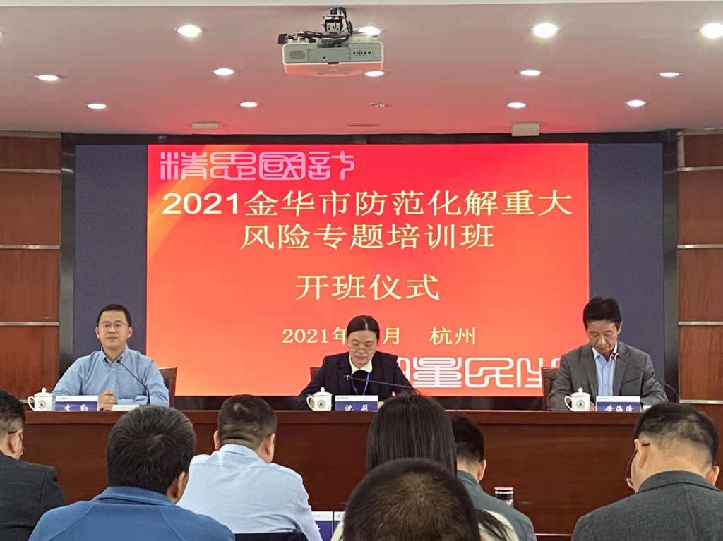 10月25日,由中国计量大学继续教育学院承办的2021年金华市防范化解重大风险专题培训班在我校开班。金华市应急管理局党委委员、人宣处处长沈莉,中国计量大学继续教育学院院长黄海清出席了开班仪式。来自金华应急管理局及市直有关单位领导和县市区直属单位的52名学员参加了此次培训。