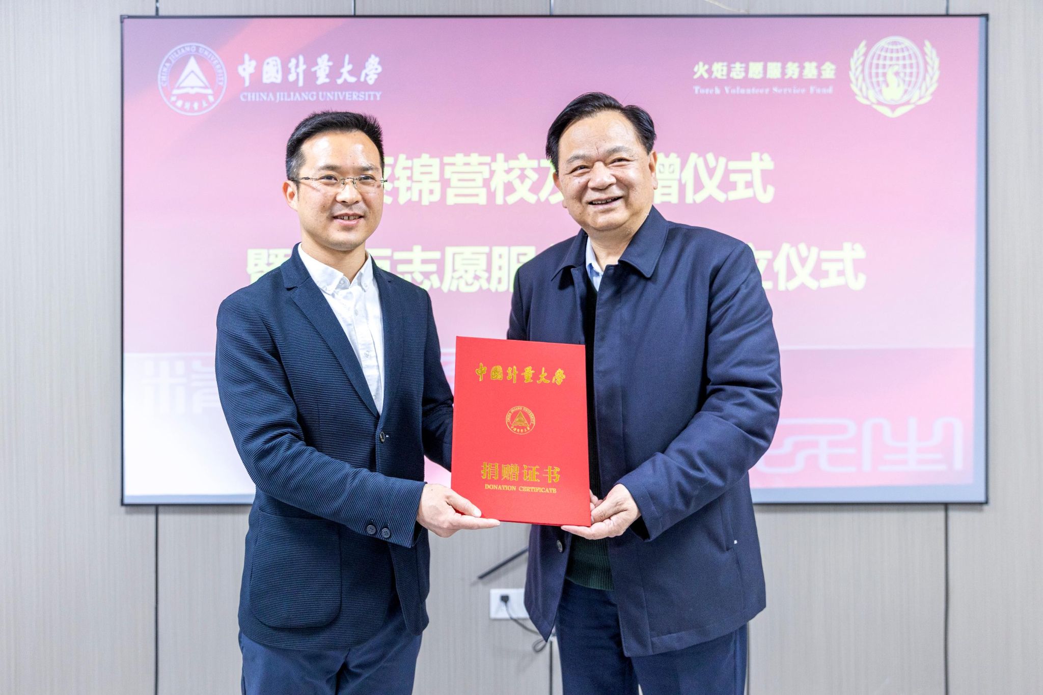 4月14日,我校在明德北楼102会议室举行蔡锦营校友捐赠暨火炬志愿服务基金成立仪式。杭州市钱塘区政协副主席、致公党钱塘支部主委杨帆校友(1991级光学计量测试专业)、杭州星普科创园管理有限公司董事长、钱塘区政协委员蔡锦营校友(2002级工商管理专业)以及钱塘区政协经科委主任吴庆峰、区委统战部副部长、区工商联党组书记邓海鹰等钱塘区领导参加仪式,我校发展委员副主任、校友总会会长冯时林,组织部(人才办)、统战部,计划财务处,对外联络处,团委和继续教育学院负责人出席仪式。仪式由对外联络处负责人主持。