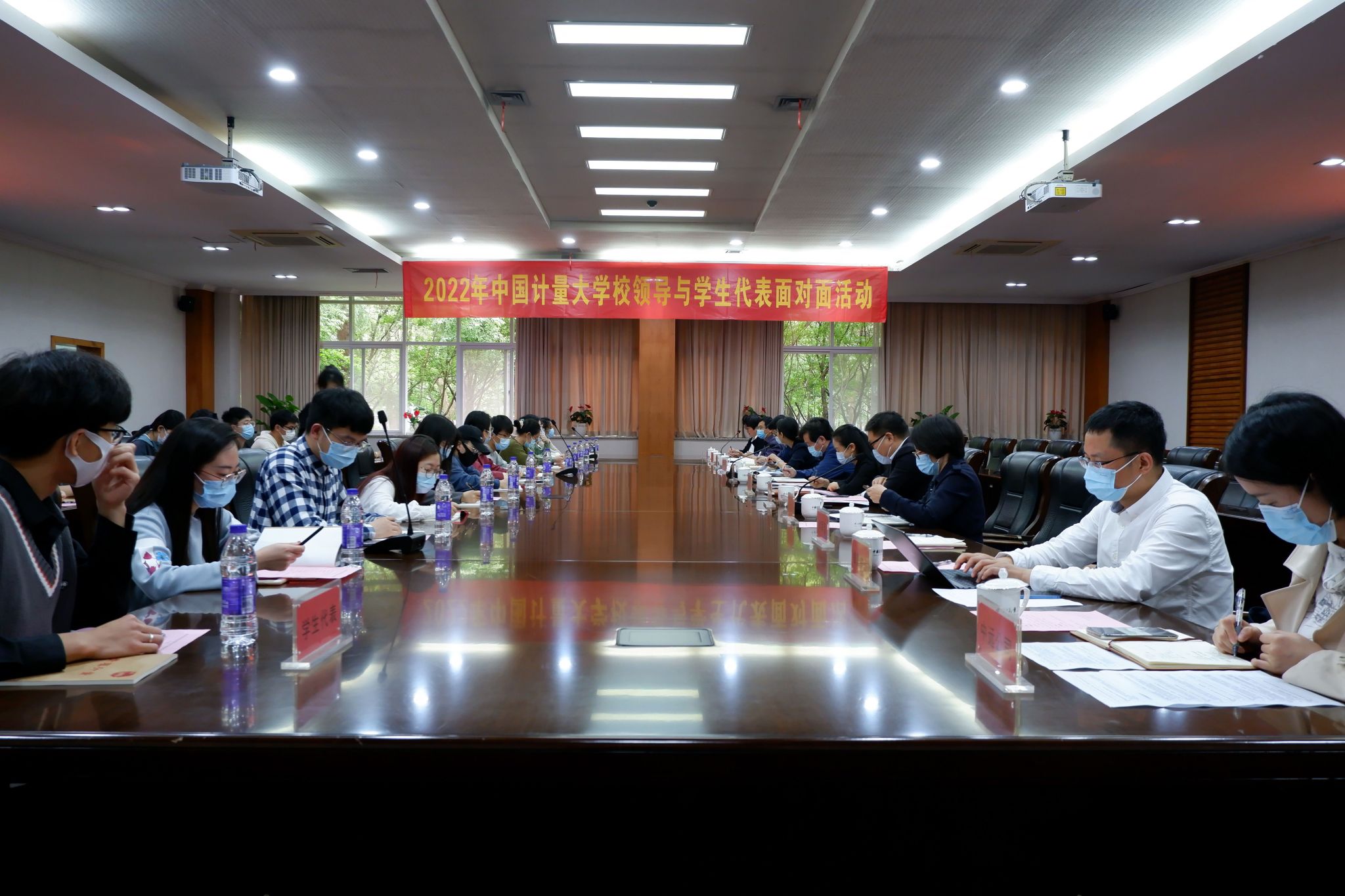 学生代表们带着从各学院收集来的同学心声,就学校教育教学管理、后勤餐饮住宿服务、图书馆服务、校园网络、校园设施、校园安全、疫情防控常态化背景下的校园生活等热点难点问题发表意见和建议。程刚与相关职能部门负责人就大家提出的问题进行了认真倾听和记录,并现场做了解答和回应。现场气氛热烈、融洽和谐。