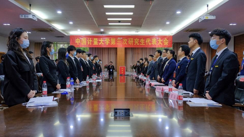 在慷慨激昂的《国际歌》中,中国计量大学第四次学生代表大会、第三次研究生代表大会胜利闭幕。