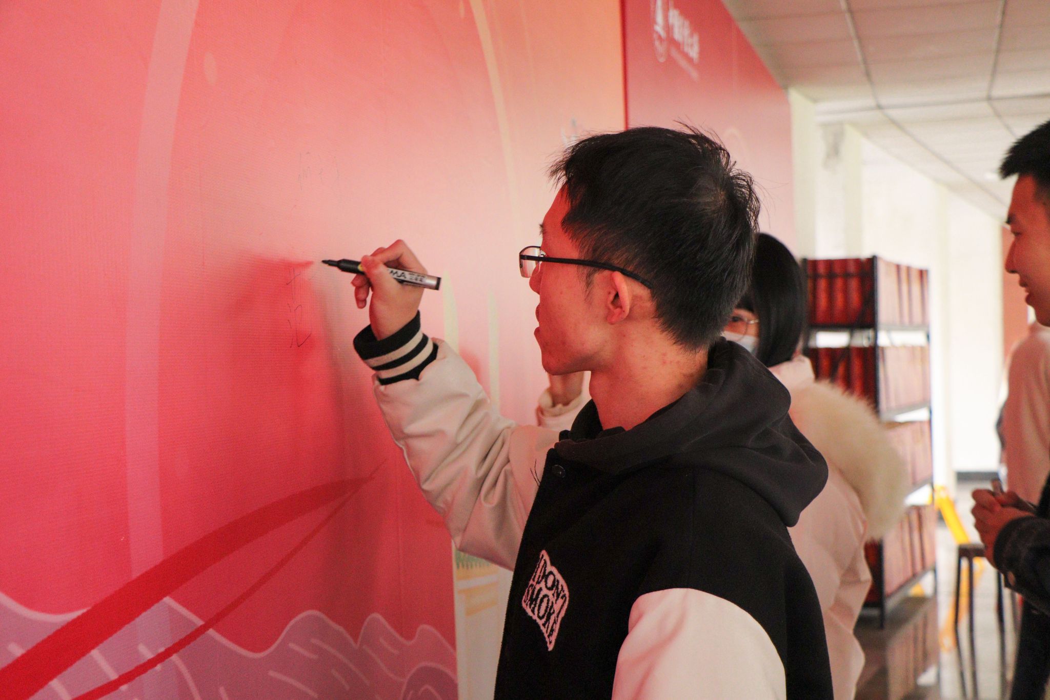 活动现场还摆放了“鱼跃龙门”的展板,考研学子们跨过“龙门”,寓意着必将顺利跨过考研这一关,一战成硕。“学校准备特别充分,我感受到了学校对学子们的关心,我定尽我所能不负期望。”来自19标准化4班的王政媛说。