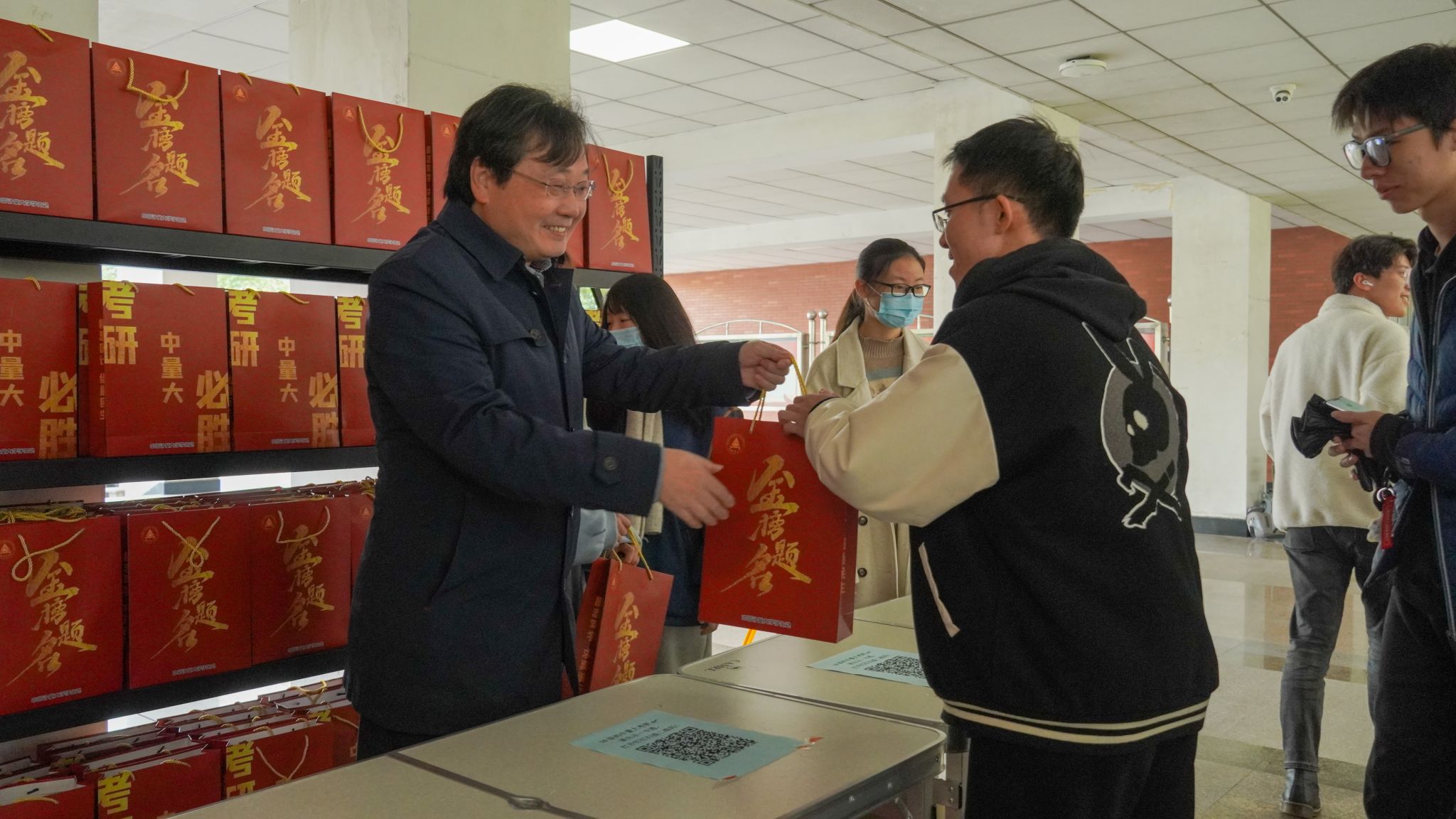 “如何更好地关心关爱考研学子,是学校一直放在心上的事。今年,我们不仅精选了5样寓意美好的慰问品,还让‘量量’给大家送上温暖的拥抱,在考研的冲刺阶段,希望同学们能放松心情,坚持到最后。”学工部部长杨娜说。