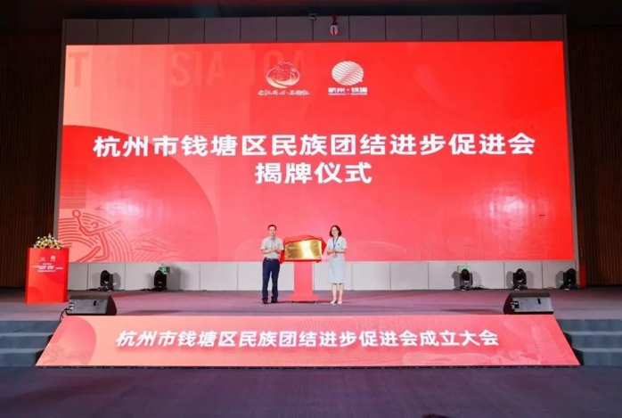 8月28日,杭州钱塘区“之江同心石榴红·钱塘融”“迎亚运、话共富”主题活动暨民族团结进步促进会成立大会召开。