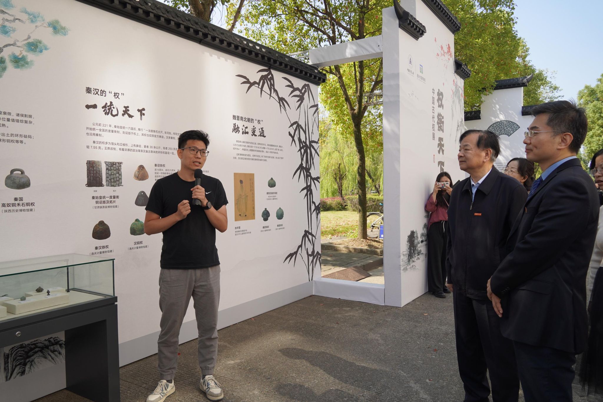 随后,图书馆(档案馆、博物馆)副馆长虞华君介绍了本次专题权展的相关情况。最后,博物馆徐冬老师为各位来宾及师生对展出的各类权进行了现场介绍和讲解,吸引了现场观众的广泛关注和兴趣。