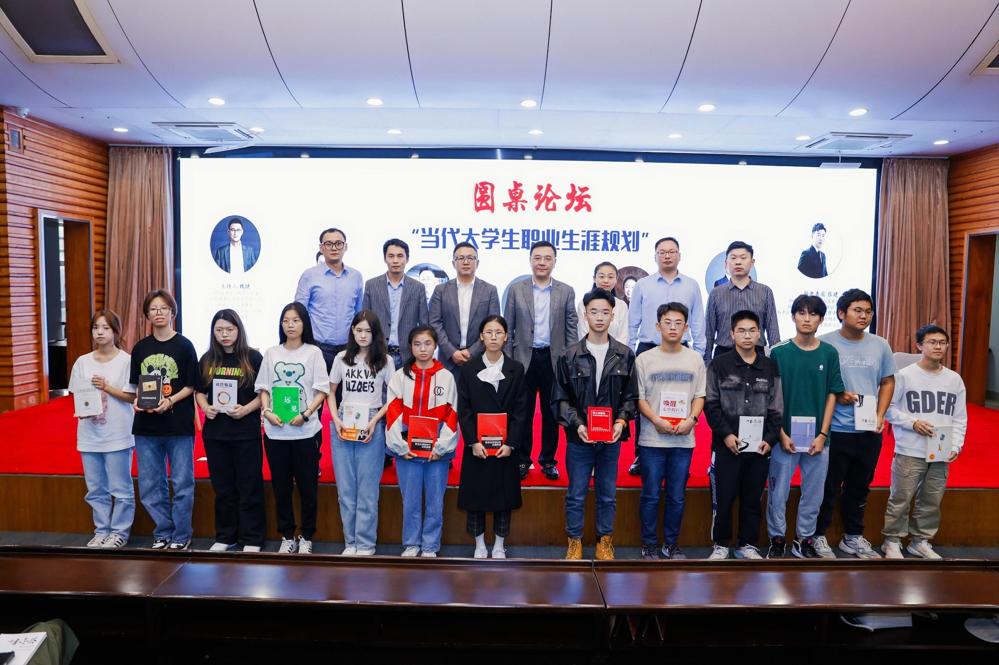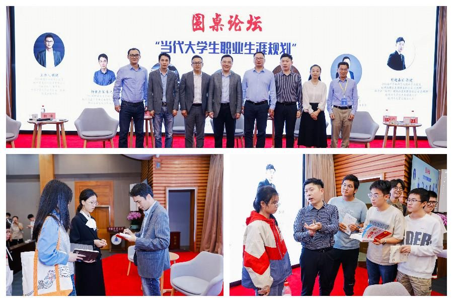 圆桌论坛现场座无虚席、气氛活跃,同学们聆听认真、参与积极。同学们就如何实现学业的持续进阶、在校期间科技创新与创业的选择困惑、学业到职业的贯通等问题向校友们踊跃提问,校友们真诚地给予解答,提出意见建议,赢得了接连不断的阵阵掌声。论坛结束后,校友们还精心为同学们准备了书籍赠送给他们,勉励学弟学妹在校期间认真学习,提升专业能力,练就过硬本领,为走上社会奠定坚实的基础。