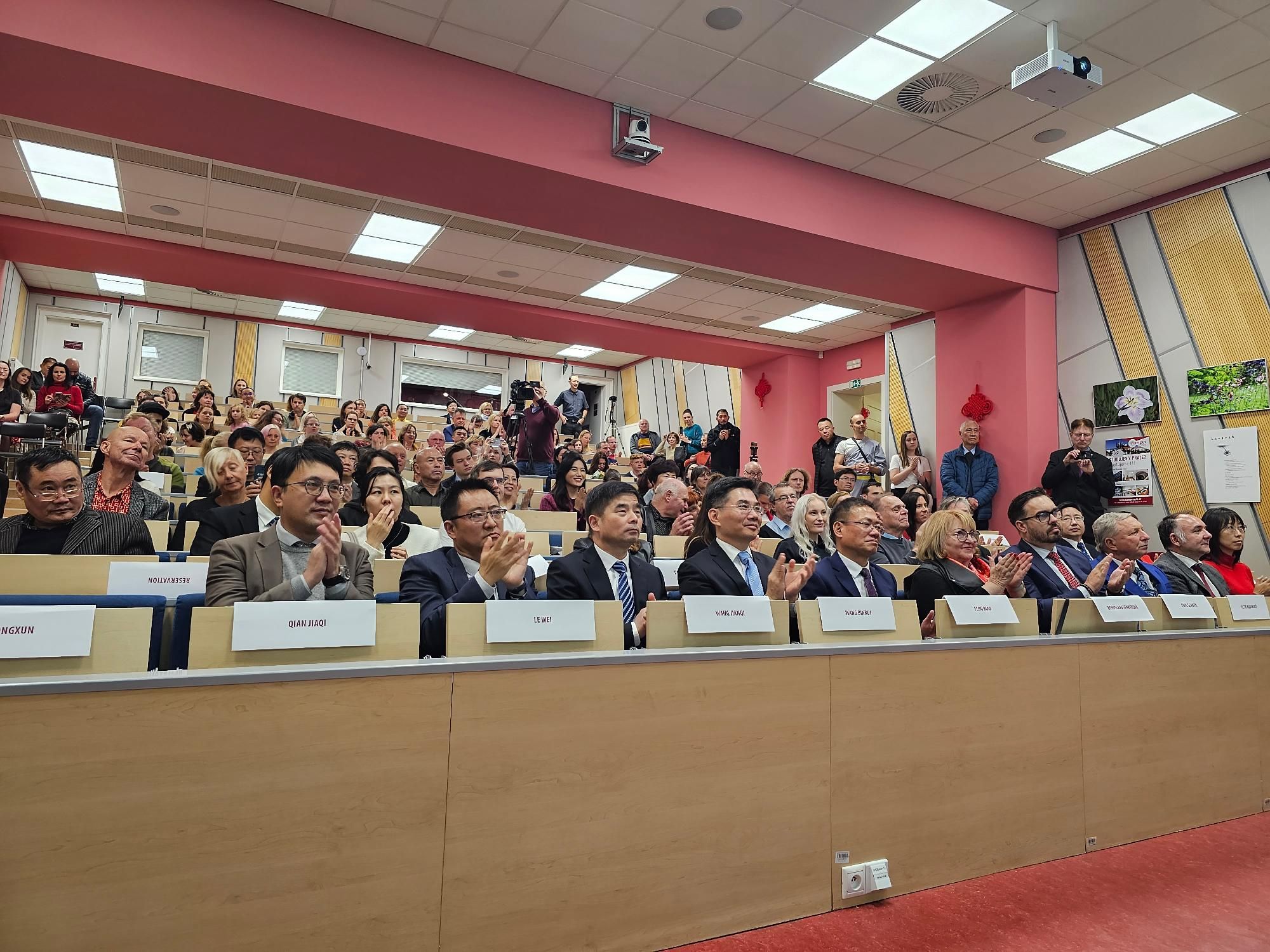 我校副校长王斌锐在致辞中指出,两国领导的关怀为孔子学院的发展奠定了坚实的基础,两校的精诚合作、相互信任与支持为孔子学院的发展提供了强劲的动力,在中国驻捷克大使馆领导及布拉格金融管理大学领导的关怀和支持下,在捷克社会各界友人及广大华人华侨的支持下,在全体孔院师生的共同努力下,孔子学院的办学规模稳步扩大、学员人数大幅增长、文化活动丰富多样、社会知名度不断提升,孔子学院作为连接两校友谊与合作的桥梁与纽带作用越来越突出。他代表学校向大使馆领导、布拉格金融管理大学领导及师生、社会各界朋友表示衷心感谢,并表示学校将继续支持和推动孔子学院的高质量发展,为打造“标准化+金融”特色孔院而不断努力!