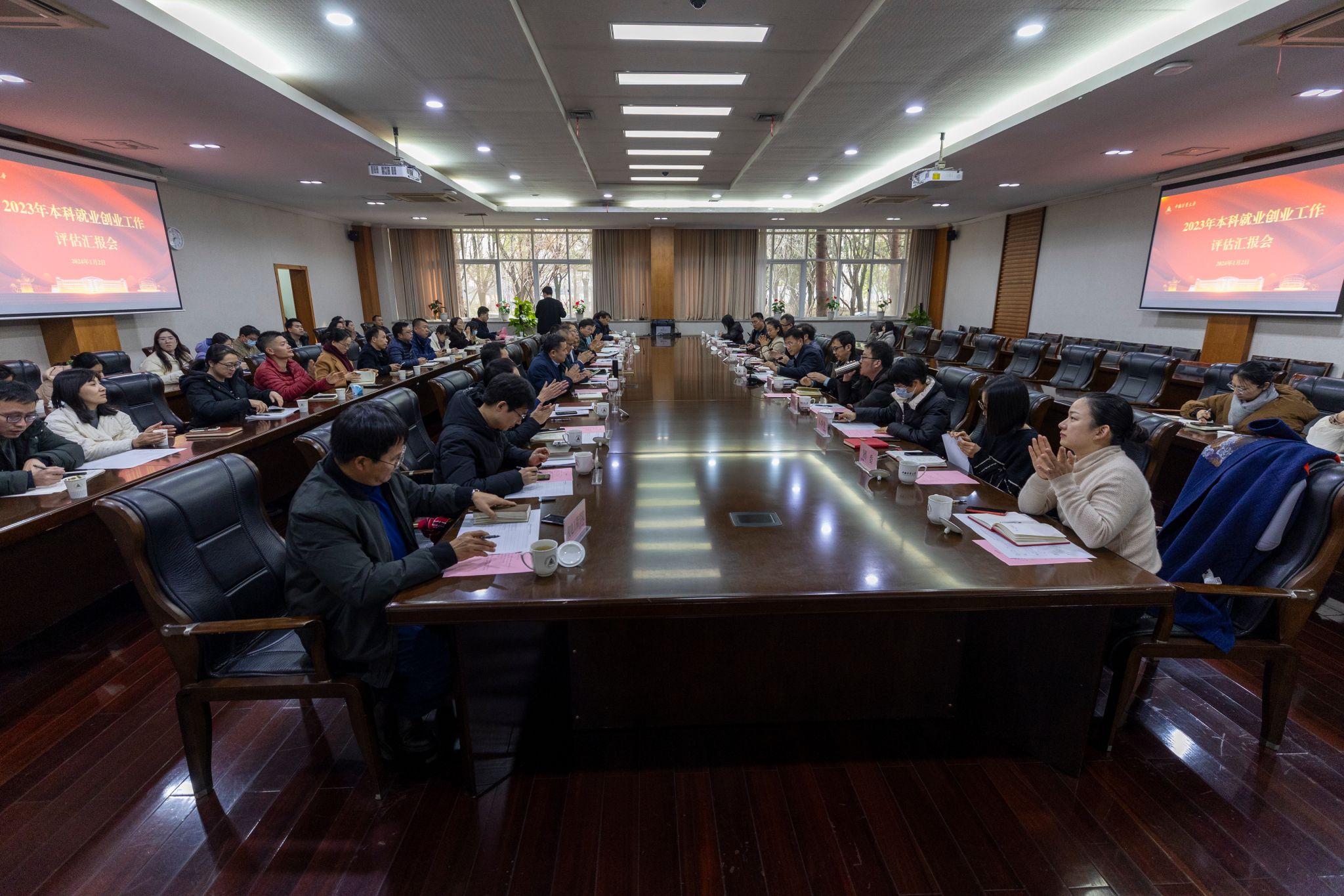 为贯彻落实党中央、国务院关于切实做好高校毕业生就业工作的决策部署,总结交流我校本科生就业创业工作成效和经验,提升毕业生就业创业工作整体水平,2024年1月2日下午,我校2023年本科就业创业工作评估汇报会在闻厅一楼会议室举行。校党委副书记程刚、副校长王新庆,校毕业生就业创业工作领导小组成员,各学院学生工作书记(副书记)、就业创业工作辅导员参加了汇报会。