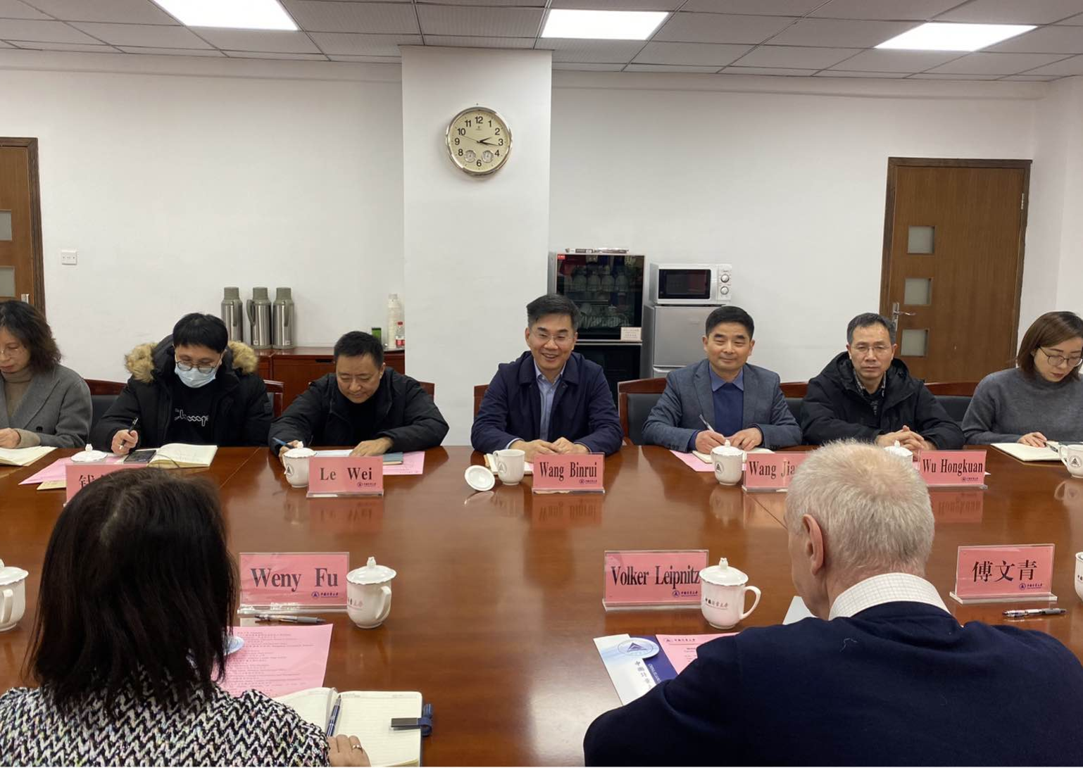 1月3日,德累斯顿应用技术大学(FHD)董事会主席、德累斯顿应用技术大学研究院FHD-INSTITUTE(HK)董事长Volker Leipnitz教授,FHD国际部部长、校长国际事务行政代表Weny Fu教授,FHD-INSTITUTE(HK)中国地区负责人傅文青来校访问。副校长王斌锐在明德楼A216会议室会见代表团并主持座谈会,国际处、经管学院、艺传学院、国际学院相关负责人参加会谈。