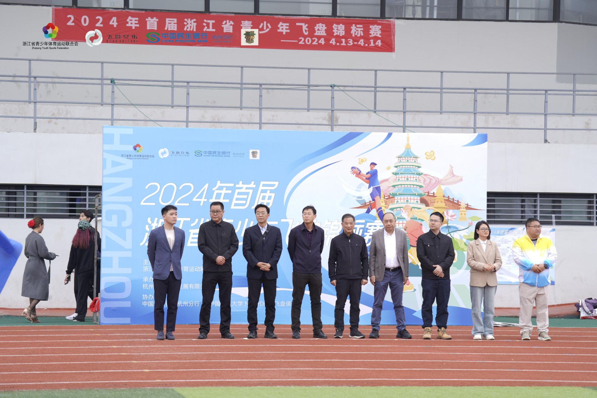 出席开幕式的领导有中国计量大学副校长王新庆,浙江省青少年体育联合会会长鲍学军,国家体育总局社会体育指导中心全民健身活动推广与指导委员会副主任朱伟平,中国计量大学体军部主任、书记陈刚,浙江水利水电学院体军部主任李亚慰,杭州钱塘区民政和文化旅游体育局体育科长周春玲,杭州飞盘文化发展有限公司总经理薛志行等。王新庆副校长致开幕辞,鲍学军会长宣布比赛开幕。