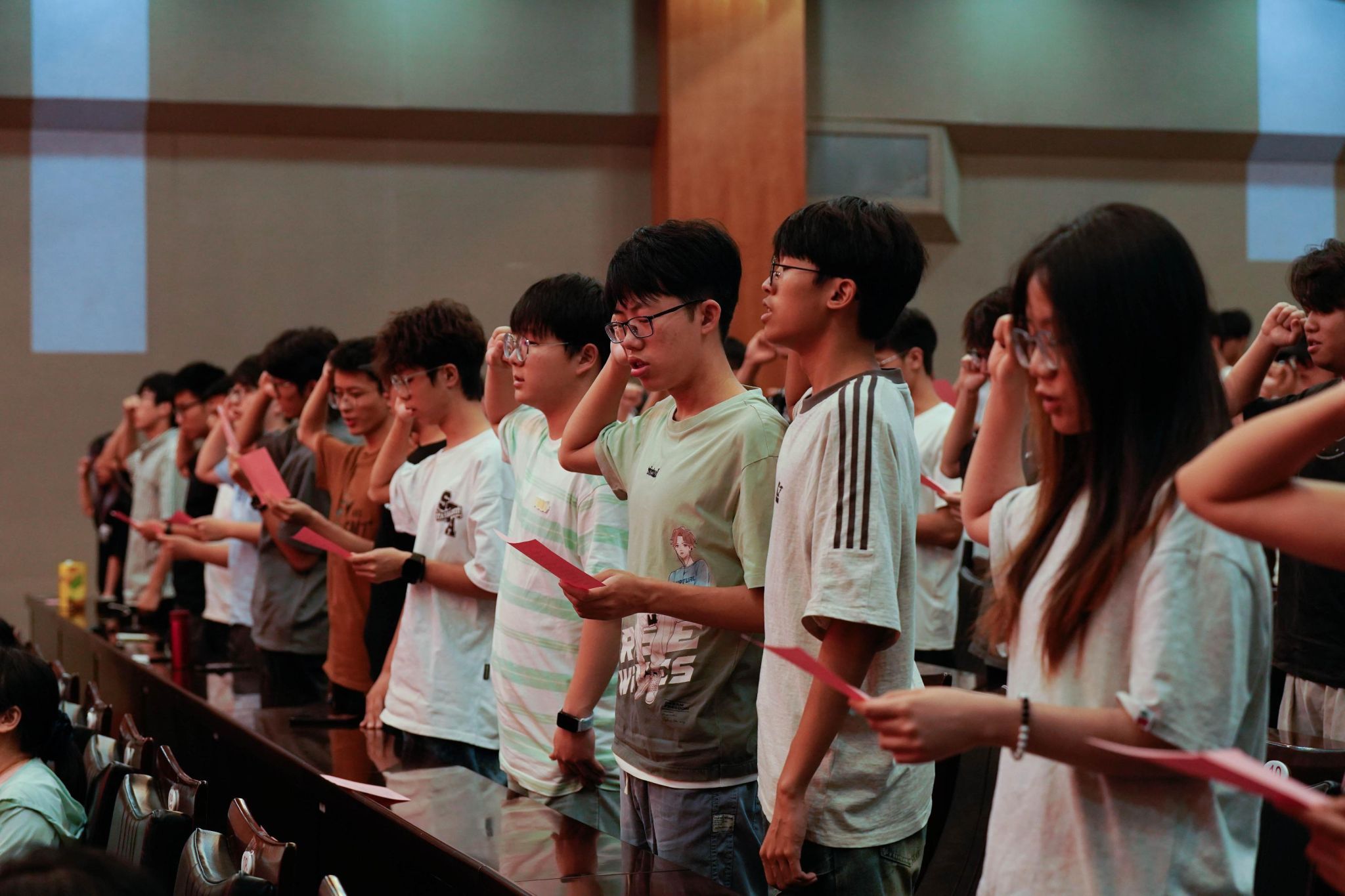 启动仪式上,实践队员现场集体宣誓,表达投身暑期实践的热情和决心,来自校国旗护卫队以及退役军人之家的举旗手高扬各学院实践旗帜,程刚为各学院实践团队代表授旗,并与相关职能部门负责人一起推动启动台横杆,共同宣布2024年校暑期社会实践活动正式启动。