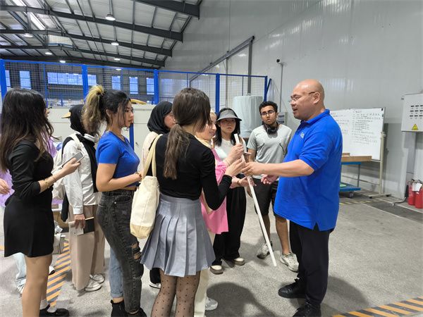 随后,留学生们来到地处章镇的国家级高新技术企业、国家级“专特精新”小型巨人企业——天行健水务公司。在生产车间,留学生们亲眼目睹工人们熟练地操作着精密设备——生产出的一根根陶瓷膜管,让上虞古陶瓷重放异彩。留学生们非常惊叹,上虞这片传奇土地上,陶瓷制作技术仍熠熠生辉,并被广泛应用于现代工业。