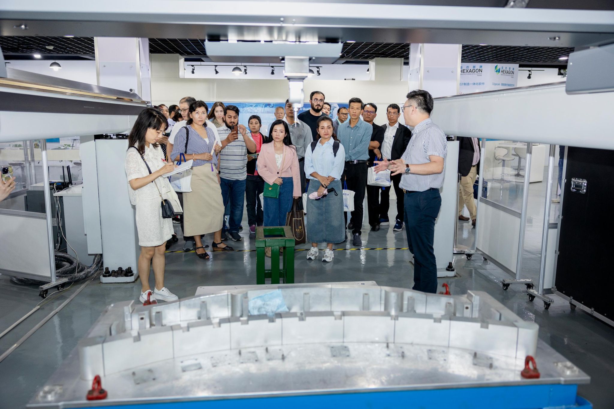 座谈会结束后,一行人员前往我校海克斯康实验室参观调研。实验室工作人员介绍了实验室基本情况,详细讲解了实验室主要精密仪器设备。期间,来访人员就检验设备领域,同实验室工作人员交换意见与心得。