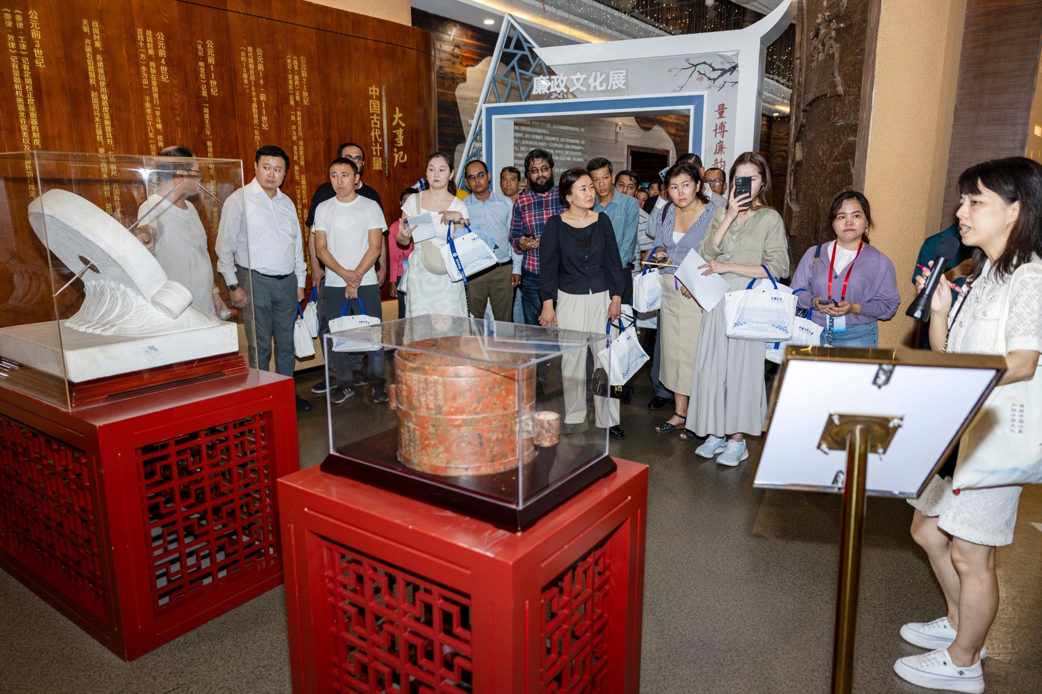 而后,一行人员参观了我校计量博物馆,领略了中华五千年的悠久计量历史文化,富有兴趣地深入了解各藏品的工作原理、使用方式和最终用途,还饶有兴致地亲身体验测量装置。