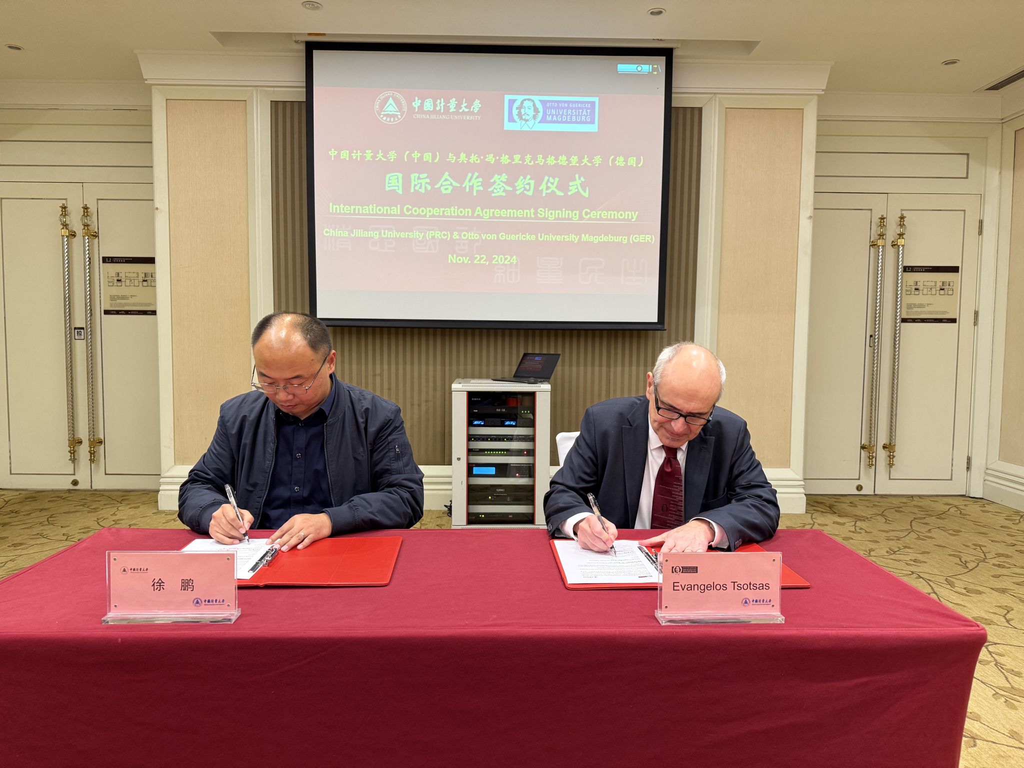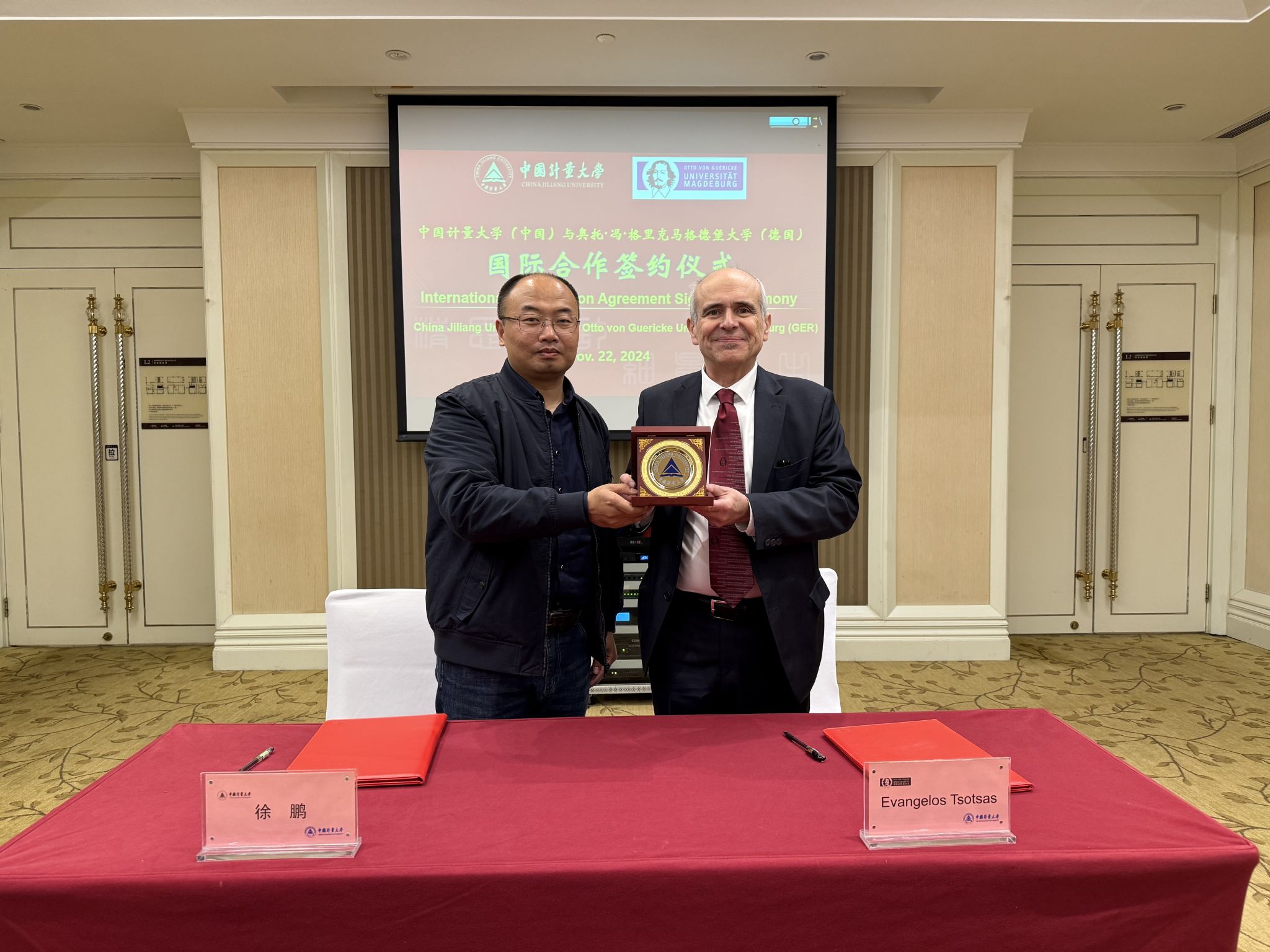 Evangelos Tsotsas表示,非常高兴与徐鹏首次见面,并对两校后续的校际教育、科技和人才交流合作充满了期待。他指出,马格德堡大学愿与中国计量大学携手,办好“德国马格德堡大学英语授课硕士项目”,同时提议开展学生德国夏令营项目,并共同推动师生互访、学分互认等新项目,助力德-中两国教育和科技交流。
