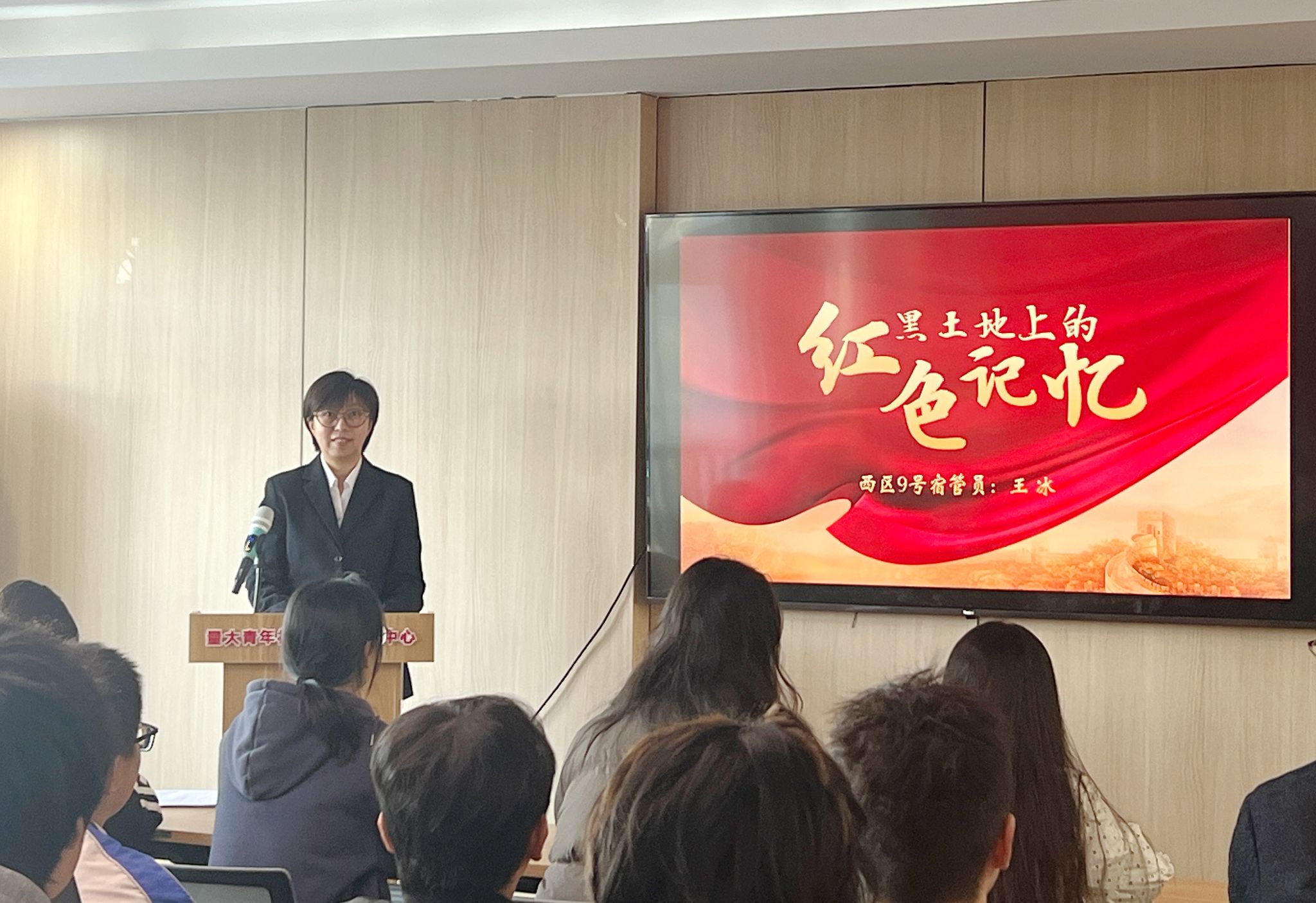 “红色是中国共产党、中华人民共和国最鲜亮的底色。”11月27日,中国计量大学开展了一场特殊的红色故事会,红色故事的讲述者是学校公寓的宿管员们,她们来自五湖四海,向学生楼层长们生动讲述自己家乡的红色故事,让同学们感受祖国发展的艰辛历程、巨大变化、辉煌成就。