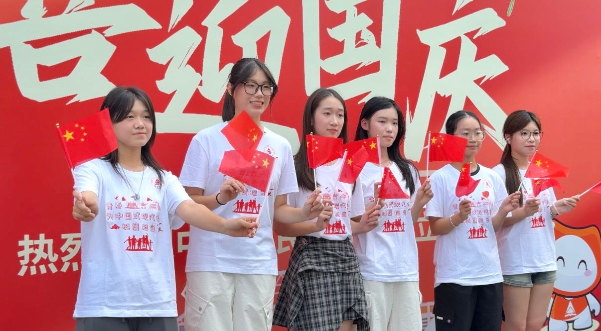 当天,学校团委策划的系列迎国庆主题活动同步启动,校园处处洋溢着喜庆氛围。主题活动区里,色彩鲜明的爱国喷绘、创意镂空打卡墙吸引师生驻足,大家与“国庆”元素同框定格美好。爱国贴纸传递祝福,趣味爱国emoji小游戏让师生在互动中加深对祖国历史文化的了解。