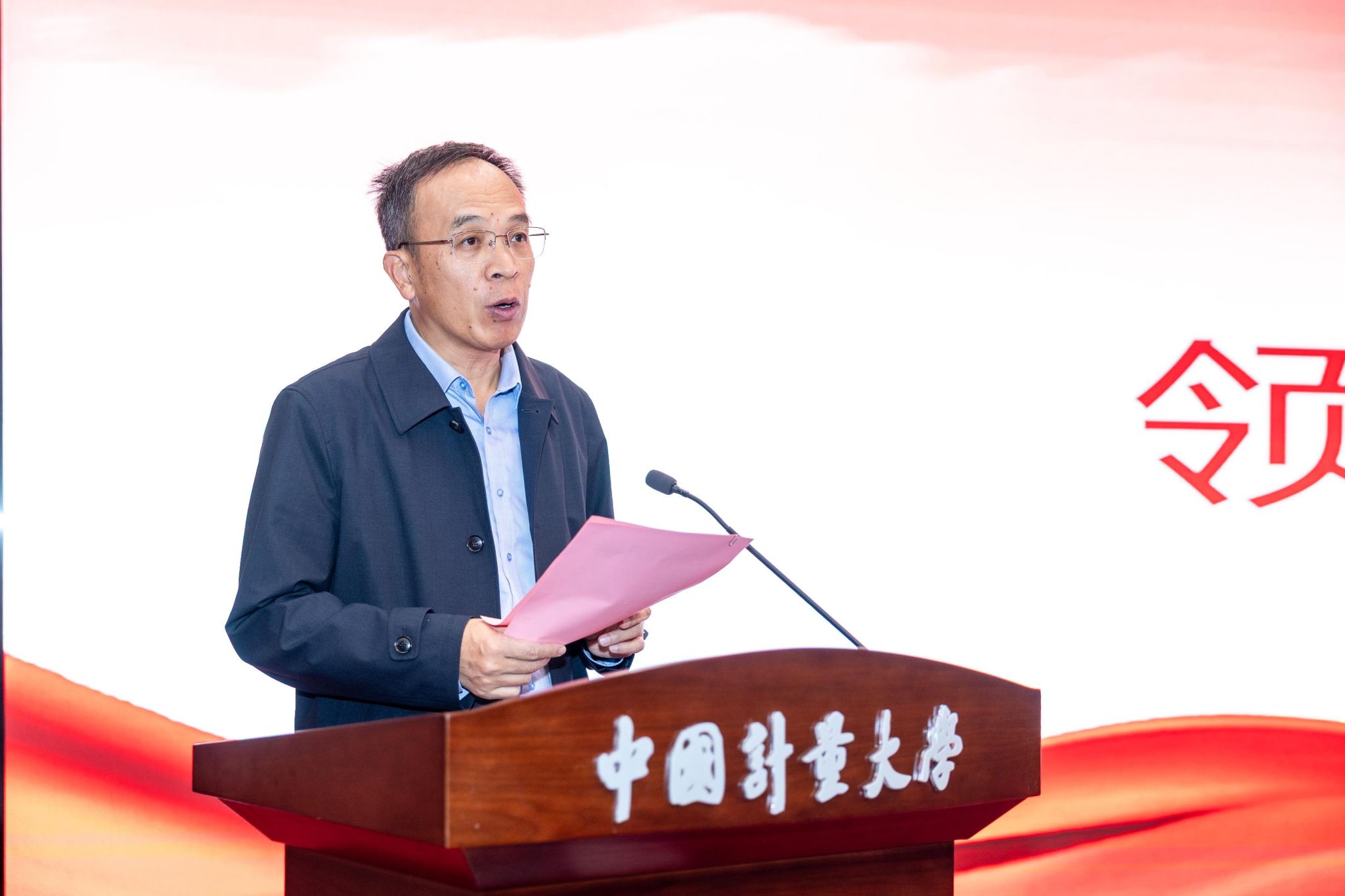 校纪委书记马春波为开幕式致辞。马春波代表学校对活动的举办和宣讲团的成立表示热烈祝贺,并传达了党的二十届四中全会关于持之以恒推进全面从严治党的重要精神,深刻阐述了加强新时代廉洁文化建设的重大意义。他强调,大学是教书育人的重要阵地,我校连续十六年举办廉政文化月活动,每年在延续传统的基础上不断推陈出新,已形成具有鲜明计量特色的“量秀清风”廉洁文化品牌。本届文化月以“精思国计扬清韵,细量民生守廉心”为主题,旨在通过系列丰富多彩的活动,持续营造积极向上、健康清朗的校园廉洁文化氛围。马春波特别对“量青清”青年廉洁文化宣讲团寄予厚望,希望这支青春队伍能深入师生,用青年话语讲好廉洁故事,传播纪法知识,成为廉洁文化的倡导者、传播者和践行者,为校园廉洁文化建设注入蓬勃的青春力量。