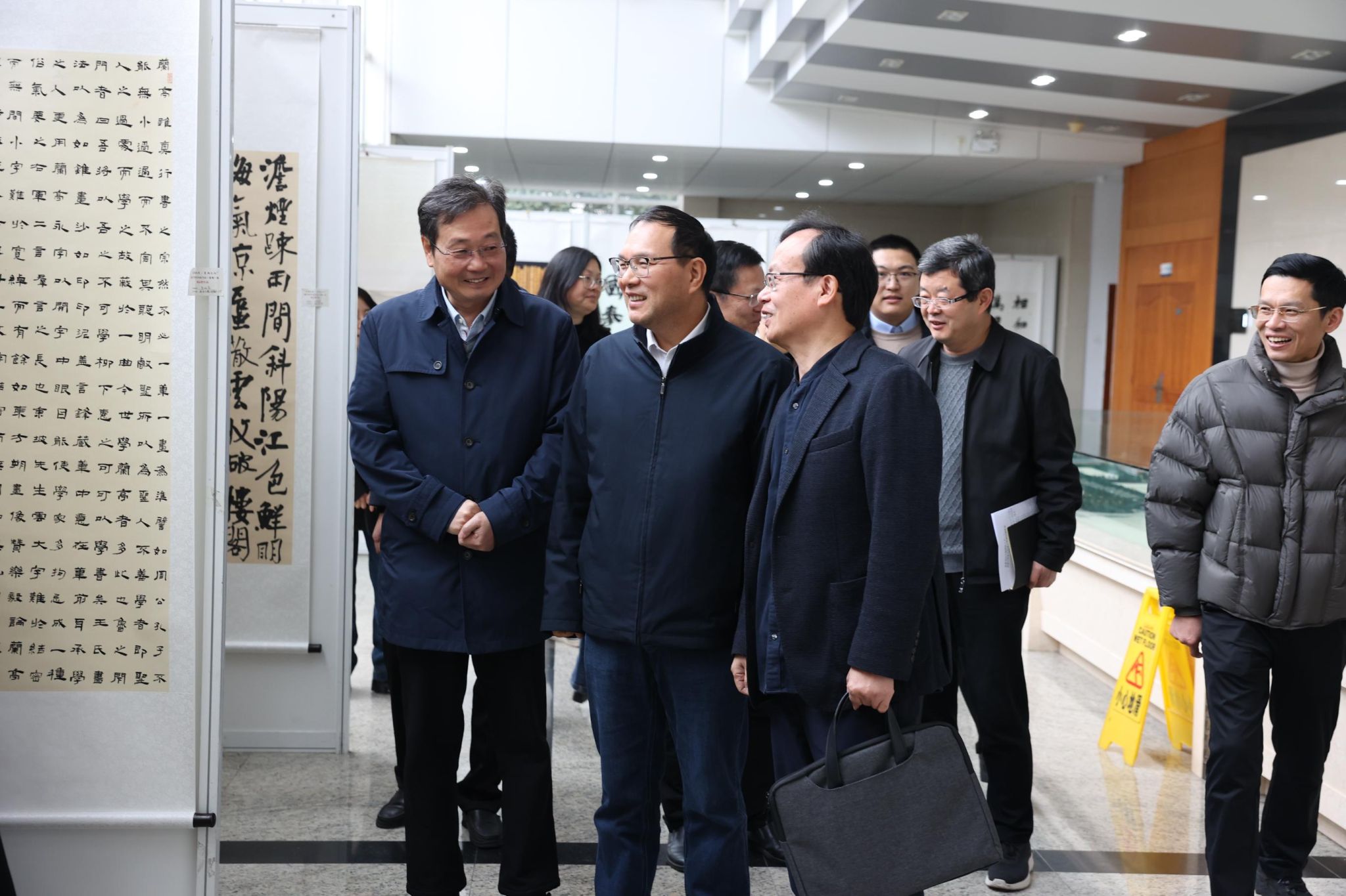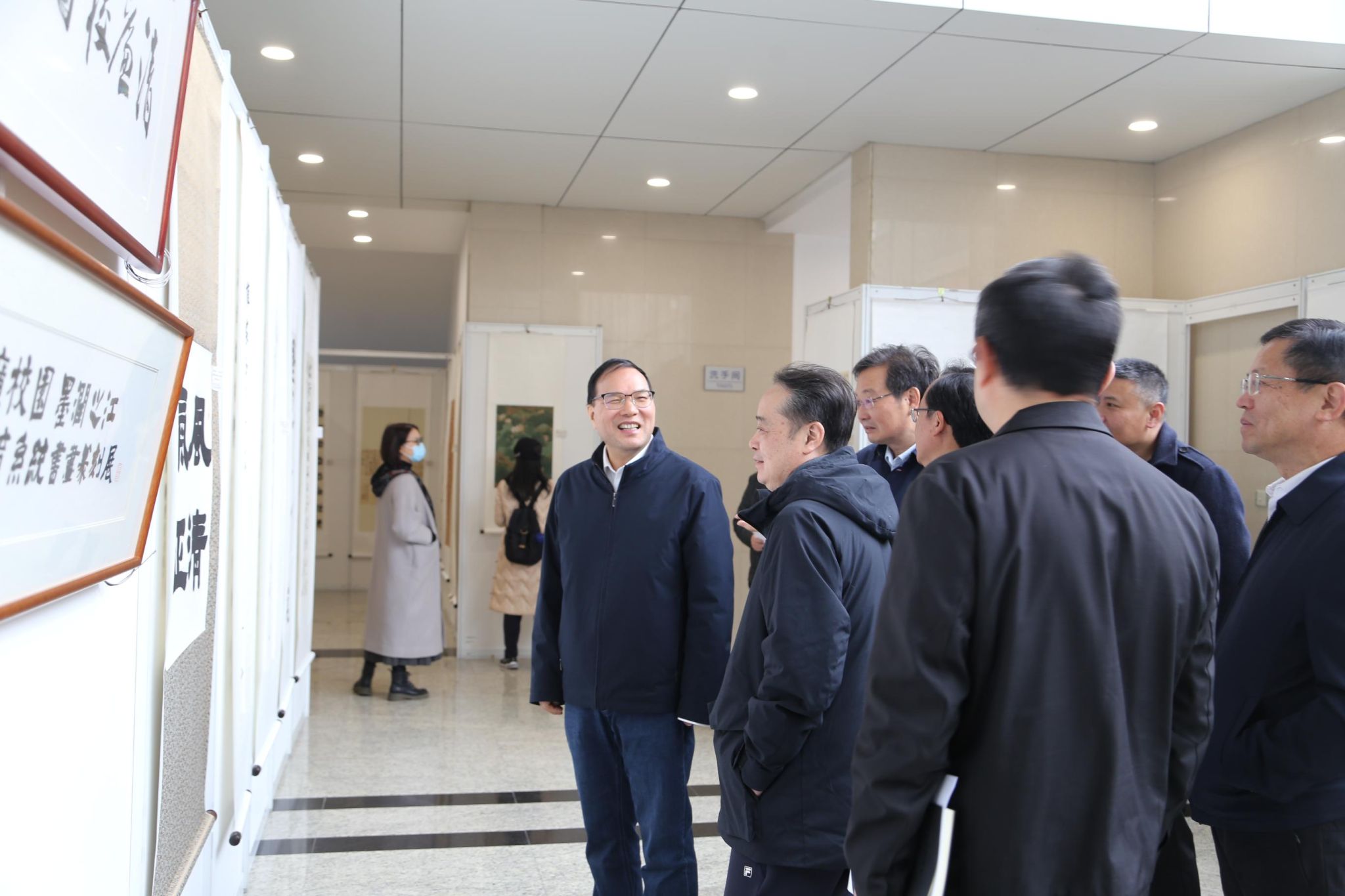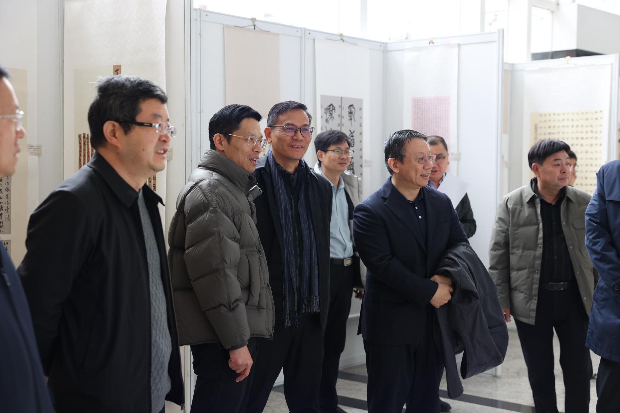 12月16日,“清廉校园•墨润之江”第十一届浙江省教职工书画(篆刻)展在我校闻厅正式拉开帷幕。浙江省总工会常委、二级巡视员、省教育工会主席王玉庆,校党委书记徐江荣,校党委副书记程刚、王迪钊,省教育厅机关党委专职副书记、纪委书记葛海龙,省教育书画协会会长黄建新,省教育宣传中心主任薛平等出席,办公室、工会、校教职工书画协会等相关单位负责人参加开幕式并参观了展览。来自全省各地九十余家单位的一百多名师生代表汇聚现场,一同见证了这一文化盛事。