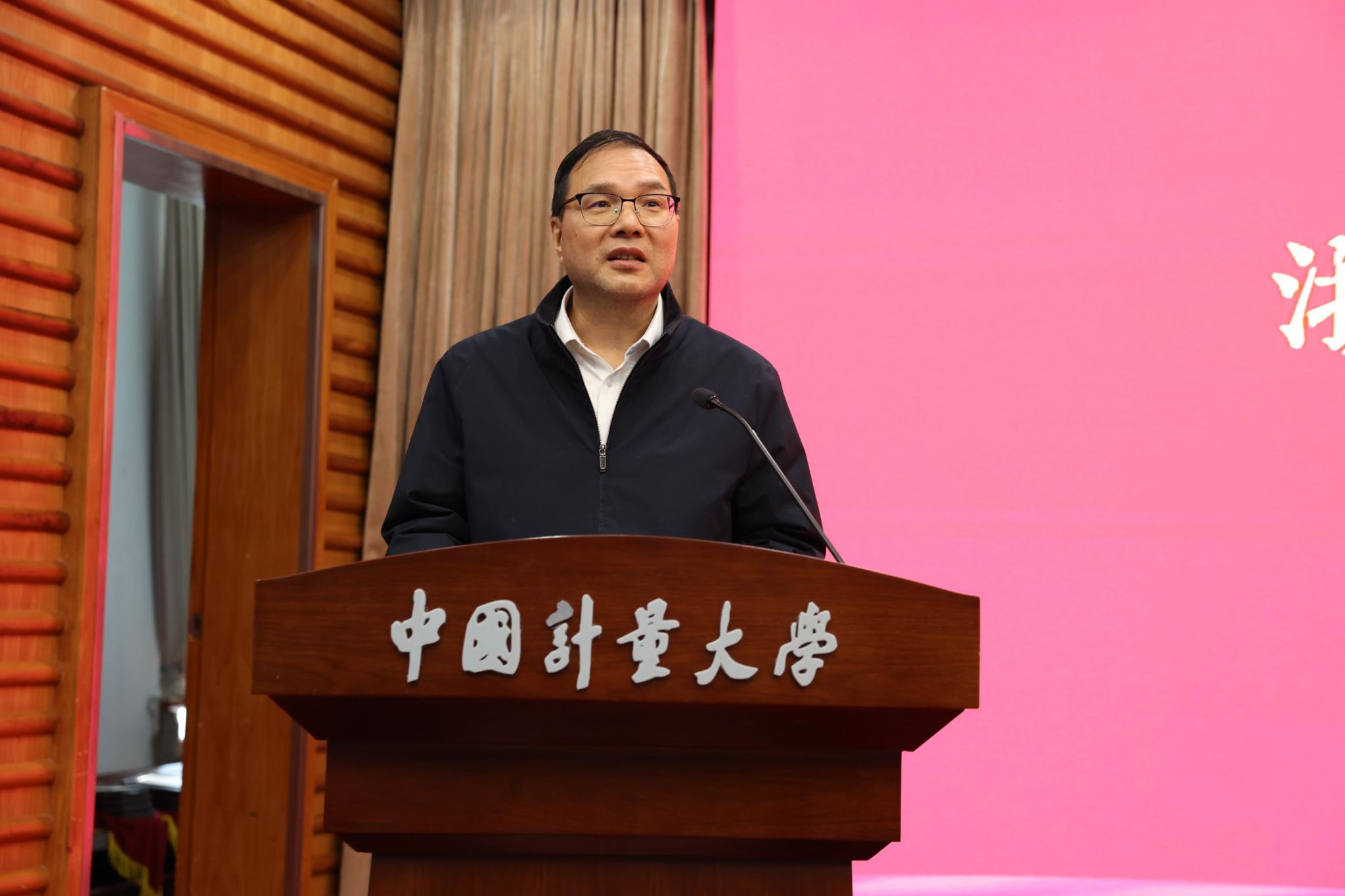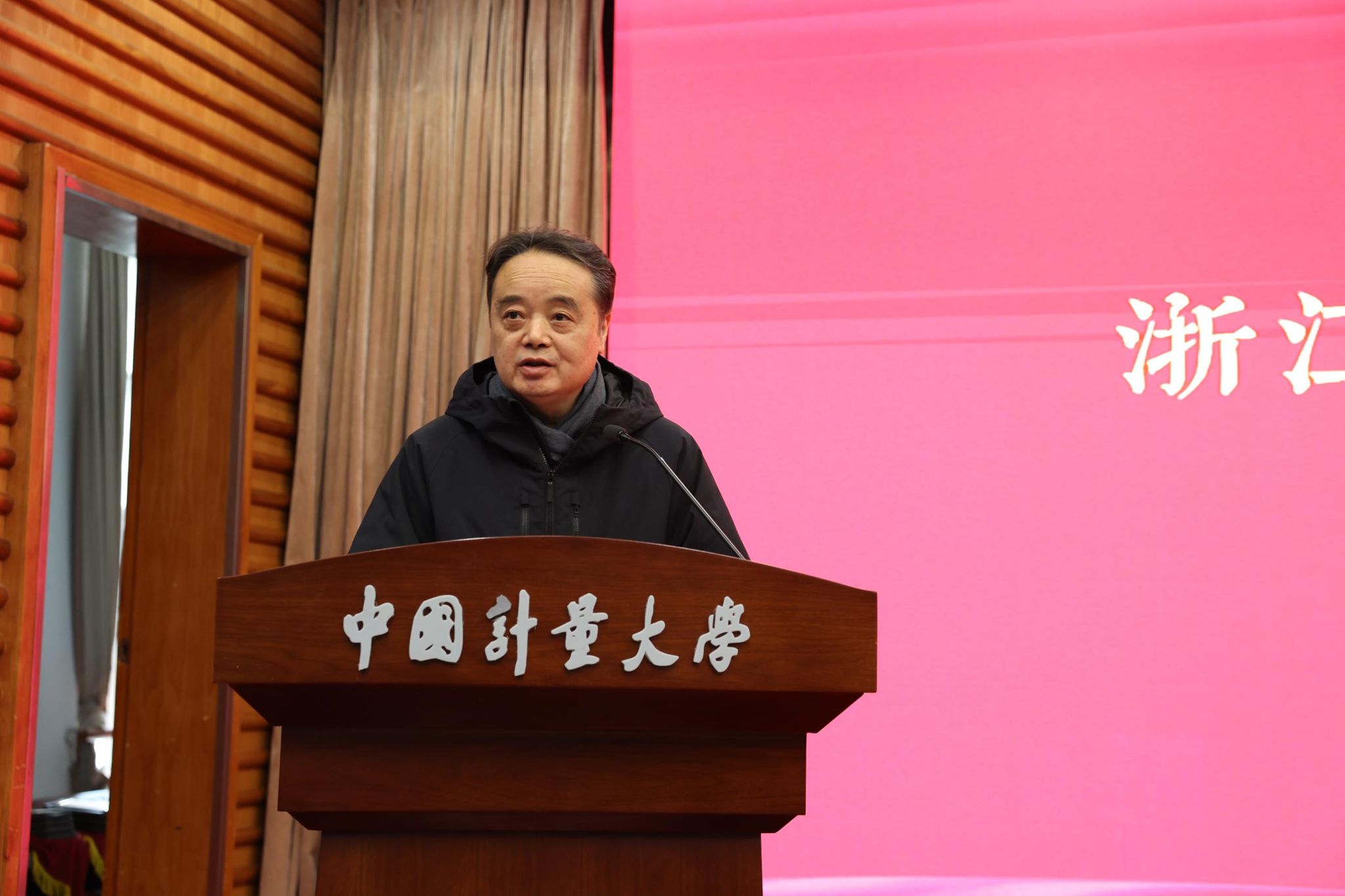 徐江荣向出席本次活动的各位领导、嘉宾、获奖单位和教师代表表示最热烈的欢迎和最诚挚的祝贺。他表示,学校始终秉持“计量立校、标准立人、质量立业”的办学理念,在深耕计量、质量、标准等特色学科的同时,高度重视校园文化建设与清廉教育。近年来,学校通过打造“计量文化长廊”“清廉书画工作室”,开展教职工书画沙龙、廉洁主题创作等活动,让笔墨丹青成为涵养师德师风、培育清廉校风的重要载体。本次展览不仅旨在展现书画艺术的魅力,更期望通过翰墨熏陶,进一步凝聚“廉洁从教、潜心育人”的共识,为浙江教育高质量发展注入文化动能。