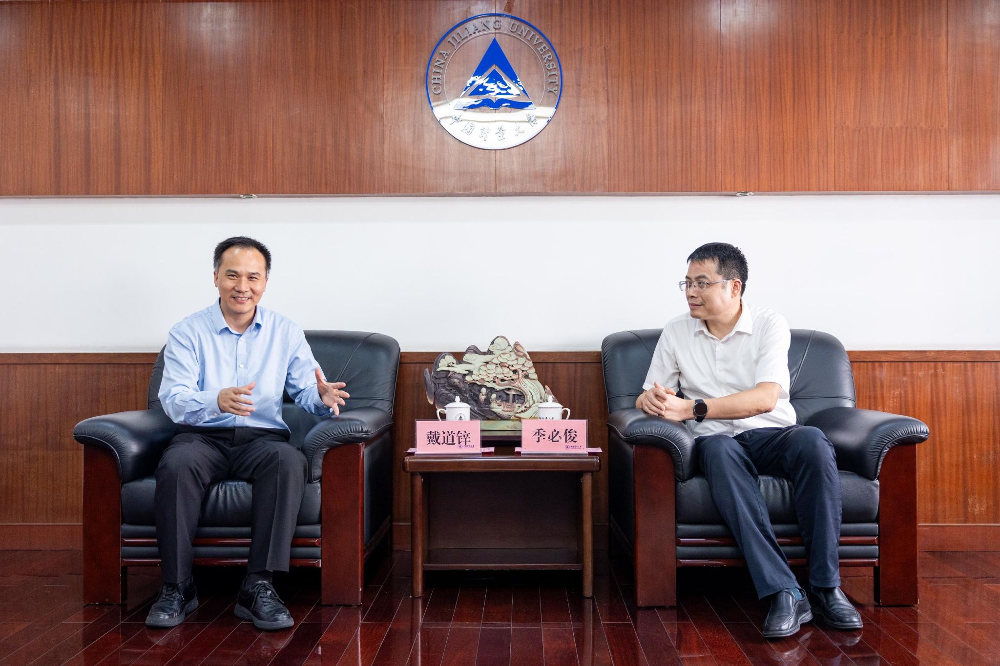 季必俊感谢学校的热情接待,高度评价了中国计量大学黄山高质量发展研究院在推动黄山市质量强市建设中作出的贡献。介绍了在推进质量强市建设中的工作成效,希望在高标准的质量管理、精准计量技术与标准化体系构建等方面深度合作,促进双方繁荣发展。