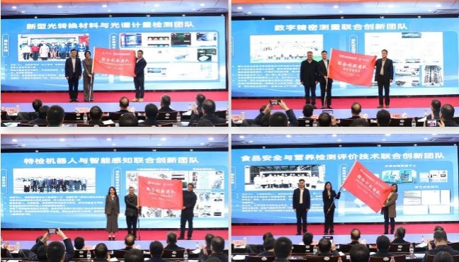 会上,还发布了新型光转换材料与光谱计量检测联合创新团队、数字精密测量联合创新团队、特检机器人与智能感知联合创新团队、食品安全与营养检测评价技术联合创新团队,并对团队进行授旗。数字精密测量联合创新团队代表介绍了联合创新攻关计划。