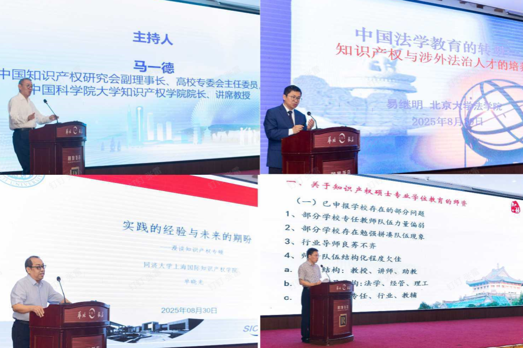 8月30日,由中国知识产权研究会高校知识产权专业委员会主办,中国计量大学法学院(知识产权学院)承办的中国知识产权研究会高校知识产权专业委员会“知识产权专业硕士培养”专题研讨会在杭州举行。中国知识产权研究会副理事长、国家知识产权局原党组成员、副局长廖涛,国家知识产权局人事司相关负责同志,中国知识产权研究会副理事长、高校专委会主任委员、中国科学院大学知识产权学院院长马一德,中国计量大学副校长王新庆出席会议,中国知识产权研究会高校专委会委员代表,来自同济大学、中南财经政法大学、南京理工大学等30余所已设置或拟申请设置知识产权硕士专业学位点高校的70余位专家学者参加会议。