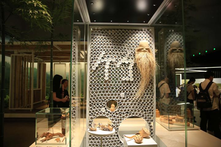 安吉白茶、安吉竹编、安吉小鲵......绿色的展厅内是满满的安吉元素。