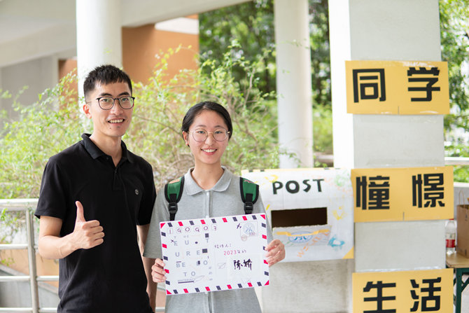 红色地贴的终点处是右侧的励志教育区,新生在此处郑重写下自己的愿望和奋斗目标,投入“时光邮筒”。来自测控技术与仪器专业的陈谊哲表示,“希望我可以在大学四年里好好努力,学好本专业的课程,在大四时争取考研”。