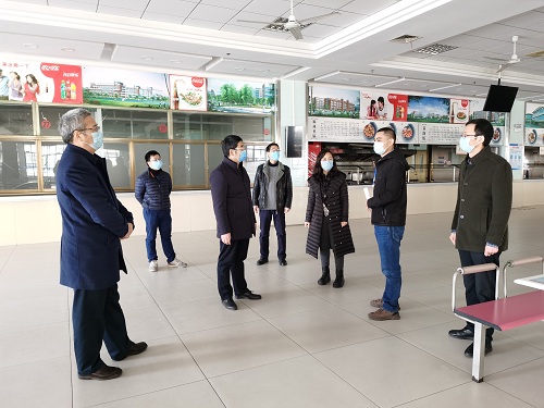 2月21日上午,党委书记、防控工作领导小组组长张土乔、副校长、防控工作领导小组副组长葛洪良与防控工作领导小组办公室、后勤保障组、综合协调组相关人员一起到西生活区G3餐厅、教工餐厅开展现场调研,研究开学返校后的师生就餐方案。